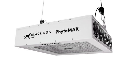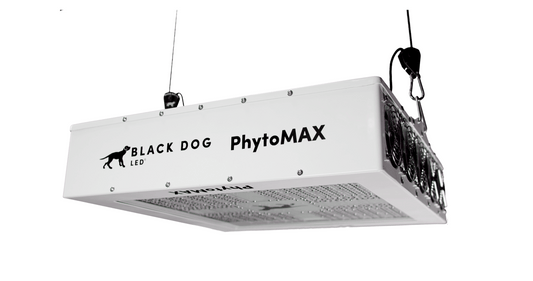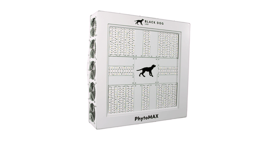 Black Dog LED at NaturaGlow, authorized retailer. PhytoMAX-4 delivers 2.13 µmol/J for cannabis. No extra lights needed, max yields.